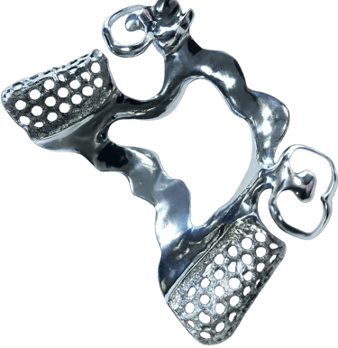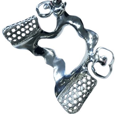 We offer iBar titanium, Vitalium 2000 metal frameworks, (Ni-free) options, metal mesh frameworks, and Creo clear flexible frame.